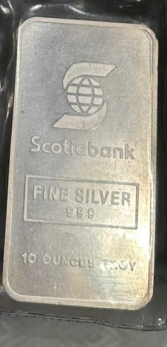 | Notes | Scotiabank-branded Engelhard Canada silver bar, serial number 001563. Engelhard bars are highly trusted and liquid bullion. | ||