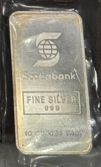 | Notes | Scotiabank-branded Engelhard Canada silver bar, serial number 001533. Engelhard bars often carry collector and brand premiums. | ||